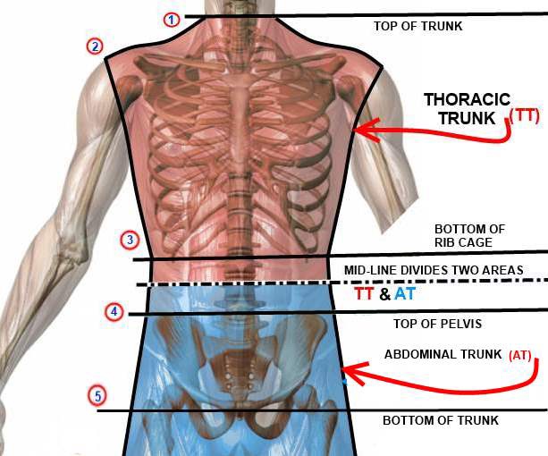 • Abdominal (Lower) Trunk: starts at top of pelvis to bottom,